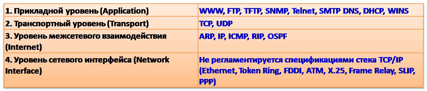 Модель TCP/IP разрабатывалась для описания стека протоколов TCP/IP (Transmission Control Protocol/Internet Protocol). Она была разработана значительно раньше, чем модель OSI.